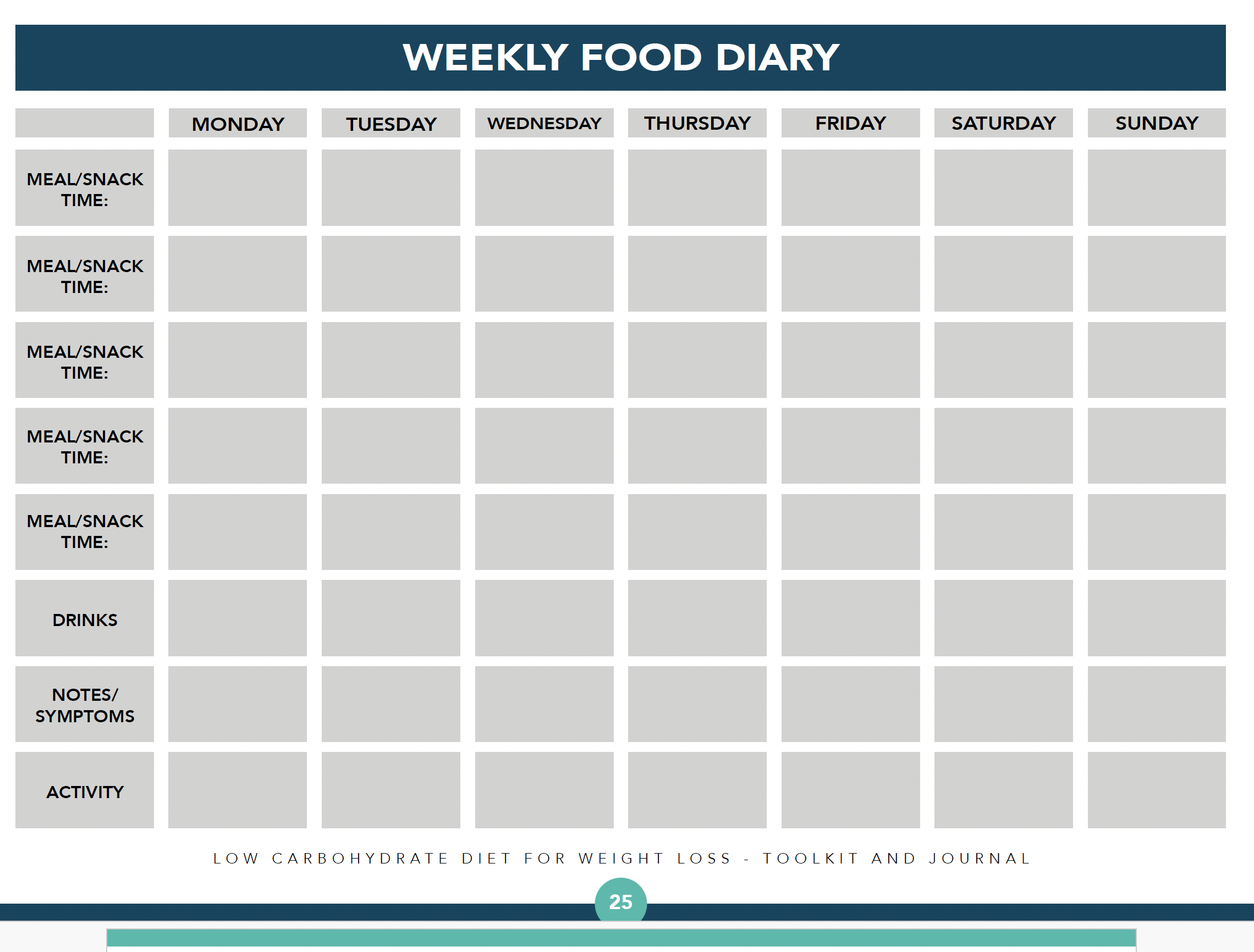 This will help you to move towards being ready to implement the low calorie and low carb meal plan. We provide tables for you to track your low carb preferences.